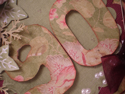 The celtic motif around the edge was filled in using the gold pen & I made tassels to go onto the end of the beaded ribbon.